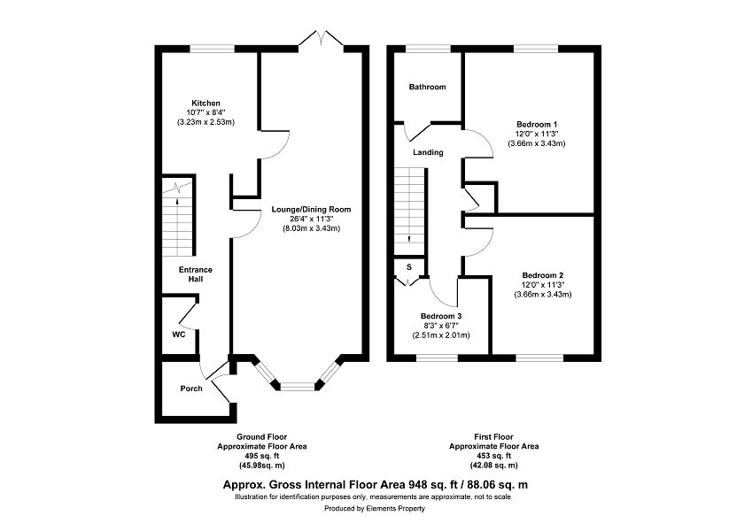 Bedroom 3 (8' 04" x 6' 08" or 2.54m x 2.03m)