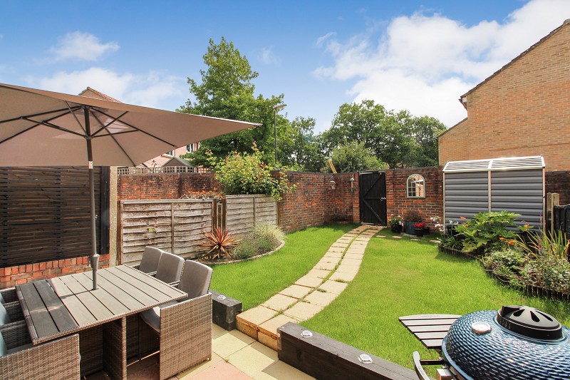 Fully enclosed with gated rear access, patio area, area of lawn.