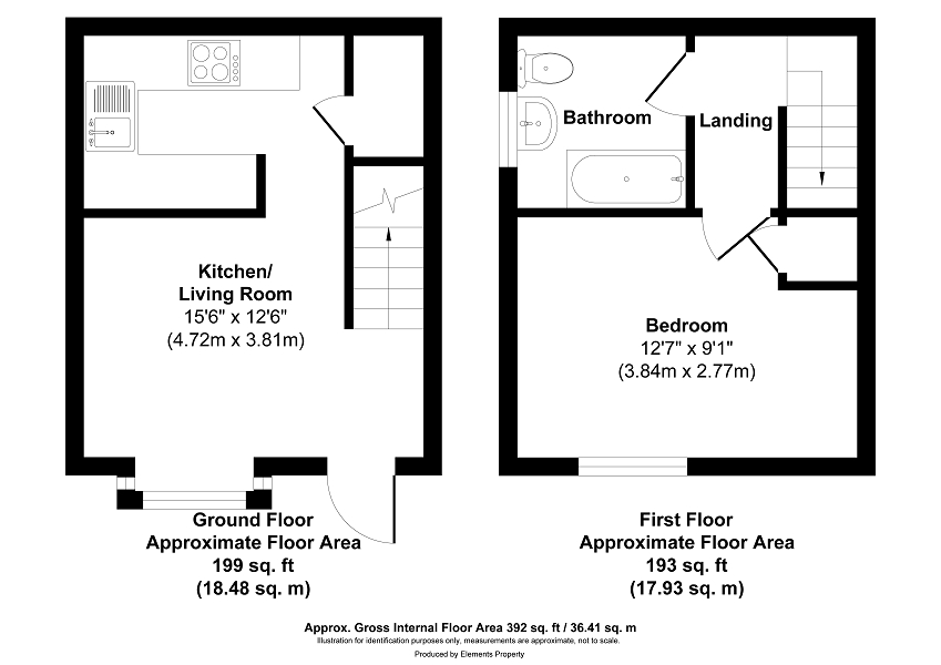 Bedroom (12' 07" x 9' 01" or 3.84m x 2.77m)