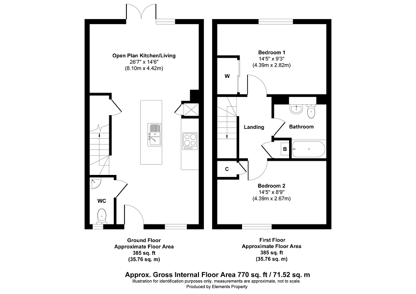 Kitchen/Living Room (26' 07" x 14' 06" or 8.10m x 4.42m)