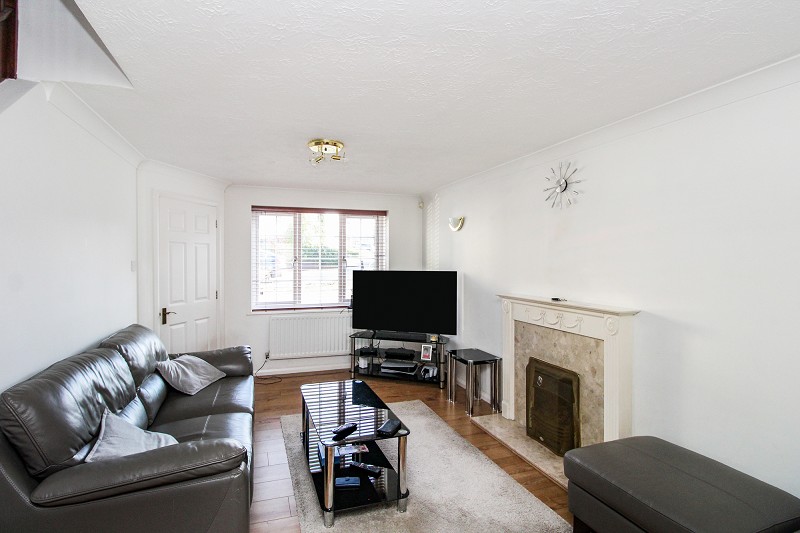 Window to front, radiator, under stairs cupboard, stairs to first floor, open plan to;