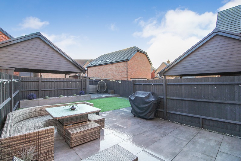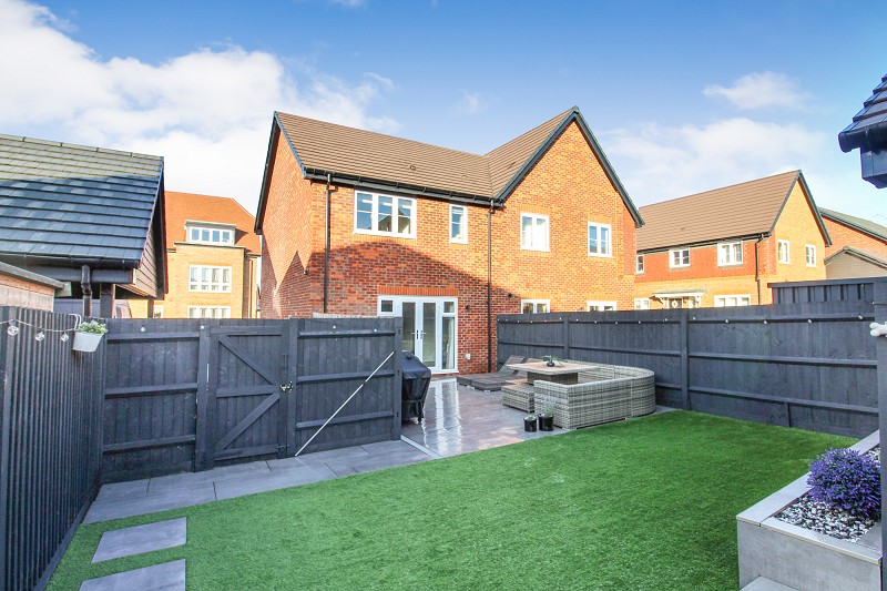 Recently landscaped rear garden being fully enclosed with gated side access, patio areas, Astroturf area of lawn.