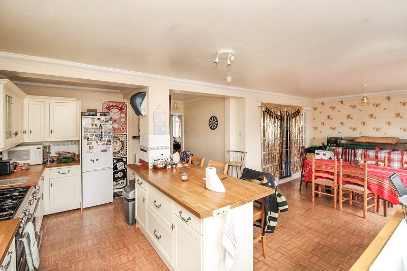 Equipped in a range of base and eye level units comprising an inset sink with draining board and mixer tap, range style oven, space for white goods, radiator, access to rear garden.