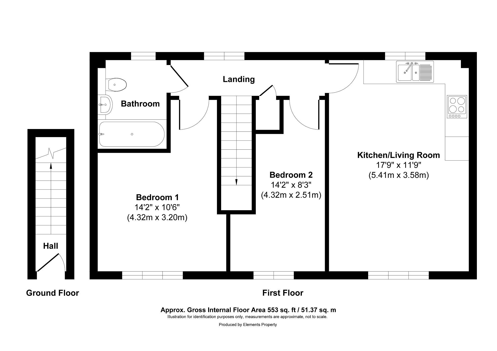 Kitchen/Living Room (17' 09" x 11' 09" or 5.41m x 3.58m)