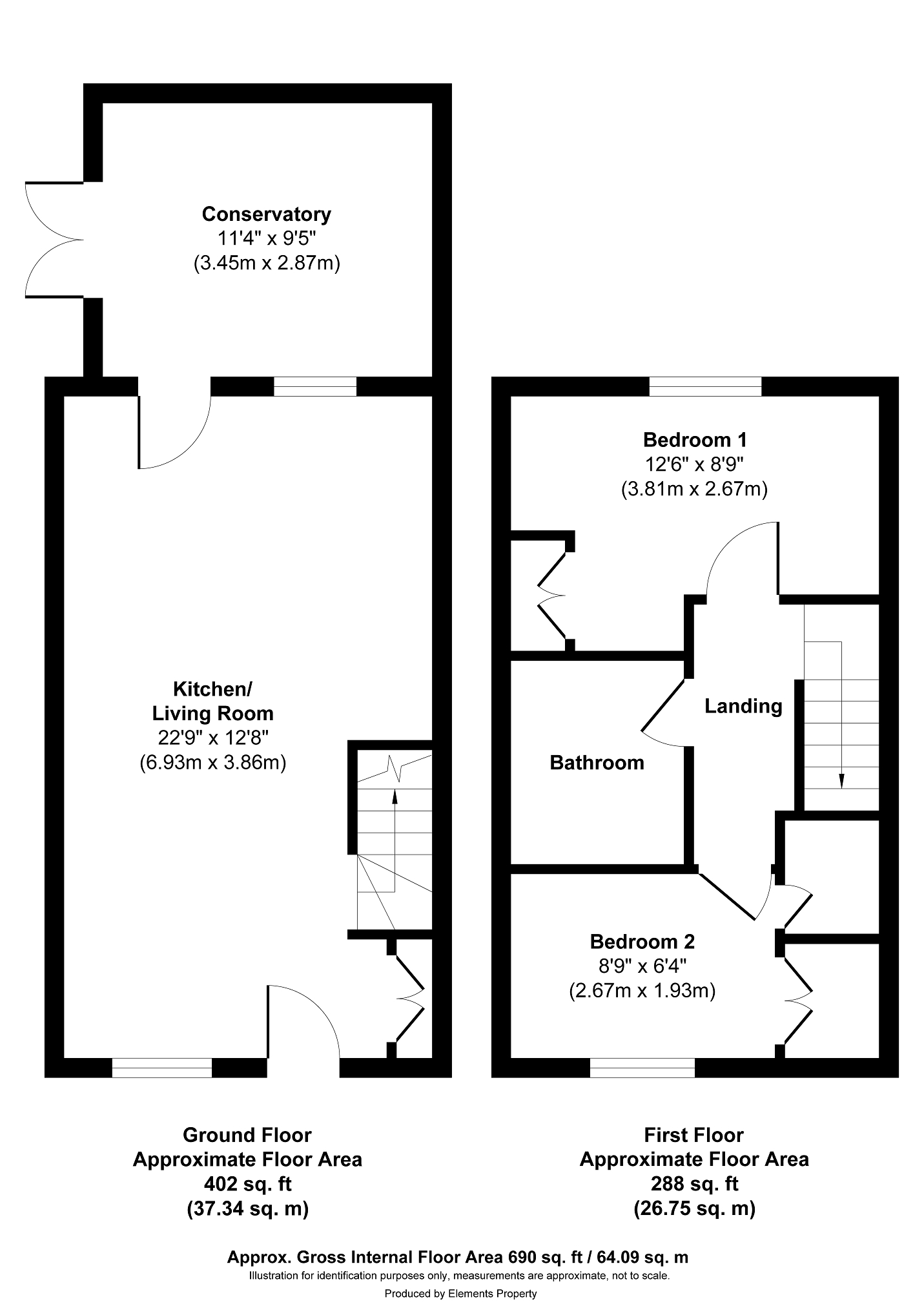 Bedroom 2 (8' 09" x 6' 04" or 2.67m x 1.93m)